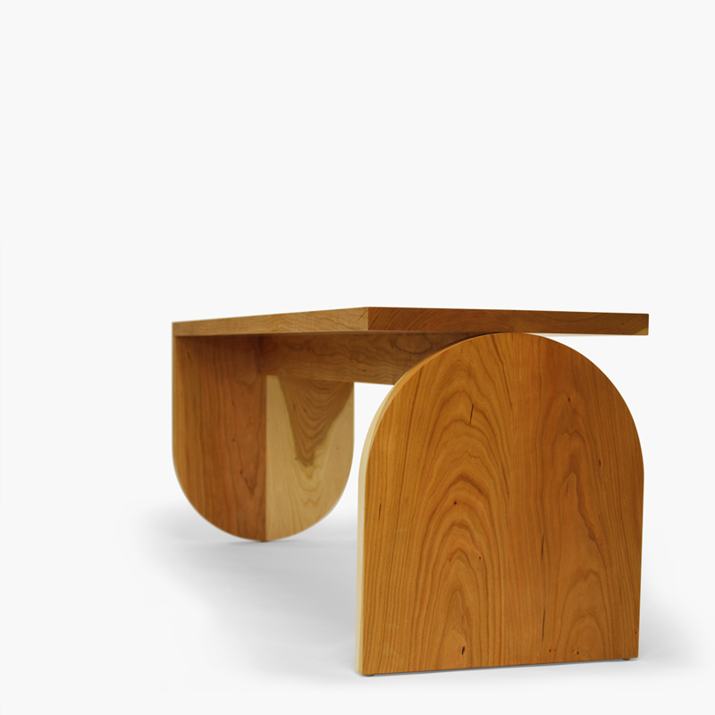 The Semicircle Bench explores the idea of balance. It is the moment when a curve meets either the ground or the top, providing structure or hindering it. An arch is known to be an inherently sturdy shape, yet it is employed in exactly the opposite manner than is expected. This challenges the viewer and sitter to examine the notion of stability, something that is taken for granted in furniture. The arcs and lines are emphasized in the negative space, perhaps filled in by our mind, or better yet left to float between connection and the slightest touch.