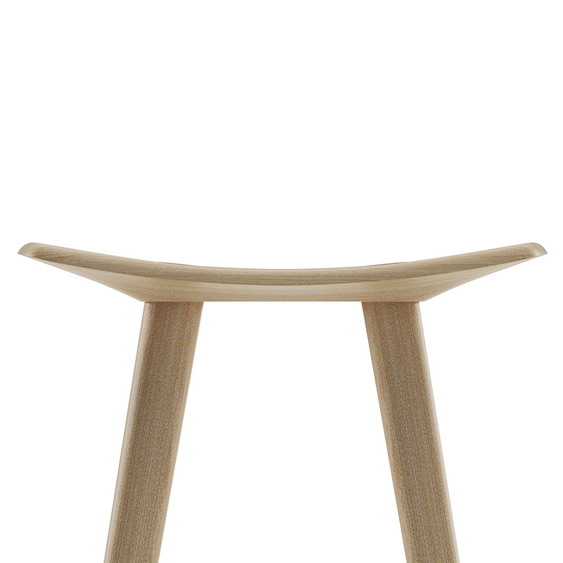 The Elora stool is based on a slim sculptural seat which gives a floating appearance. Traditional wedged tenons attach the legs in a time tested method. There are three heights which all use the same leg component. A metal footrest provides structural support. An optional seat pad and backrest extend the range's use.